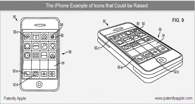 Uma nova patente arquivada pela Apple indica que a empresa pode realizar em breve uma mudança no dinamismo de seus futuros dispositivos. Intitulada “Interface de usuário com topografia mutável”, a patente foi originalmente arquivada no primeiro trimestre de 2009 e publicada nesta terça-feira (21) pelo Escritório de Patentes e Marcas dos EUA.