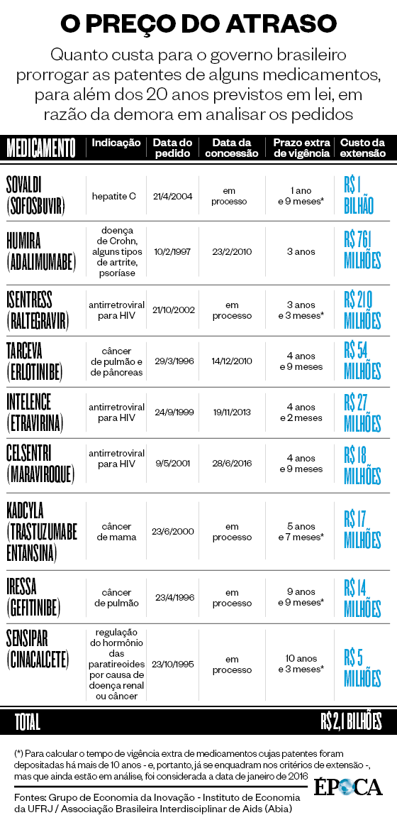 fonte: http://epoca.globo.com/vida/noticia/2016/08/quanto-custa-ao-brasil-prorrogar-patentes-de-medicamentos.html